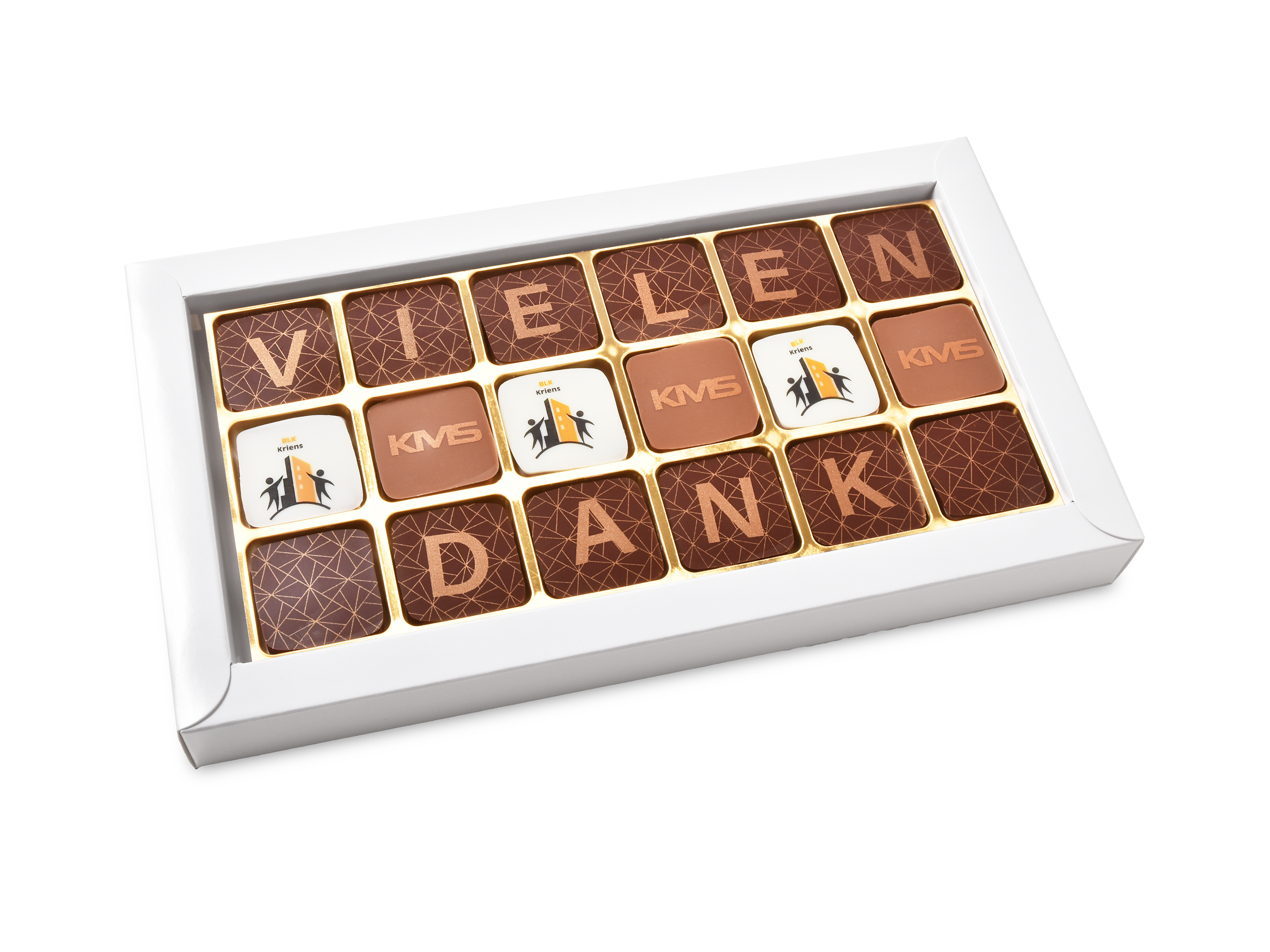 Schenken Sie Ihren Kunden oder Geschäftspartner personalisierte Schokoladenpräsente zu Weihnachten, Firmenjubiläen oder einfach als Dankeschön.